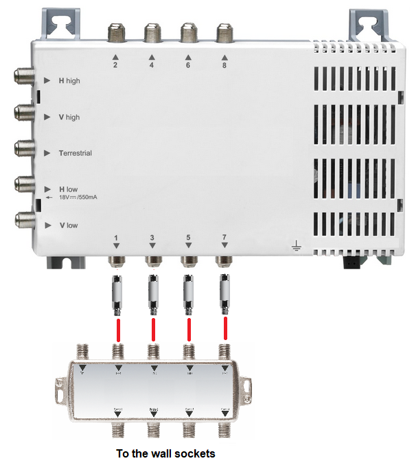 We recommend distributors with decoupling (attenuation) between the outputs up to max. 20-25dB. E.g. Axing BVE x-01P series for terrestrial applications (5-862MHz).